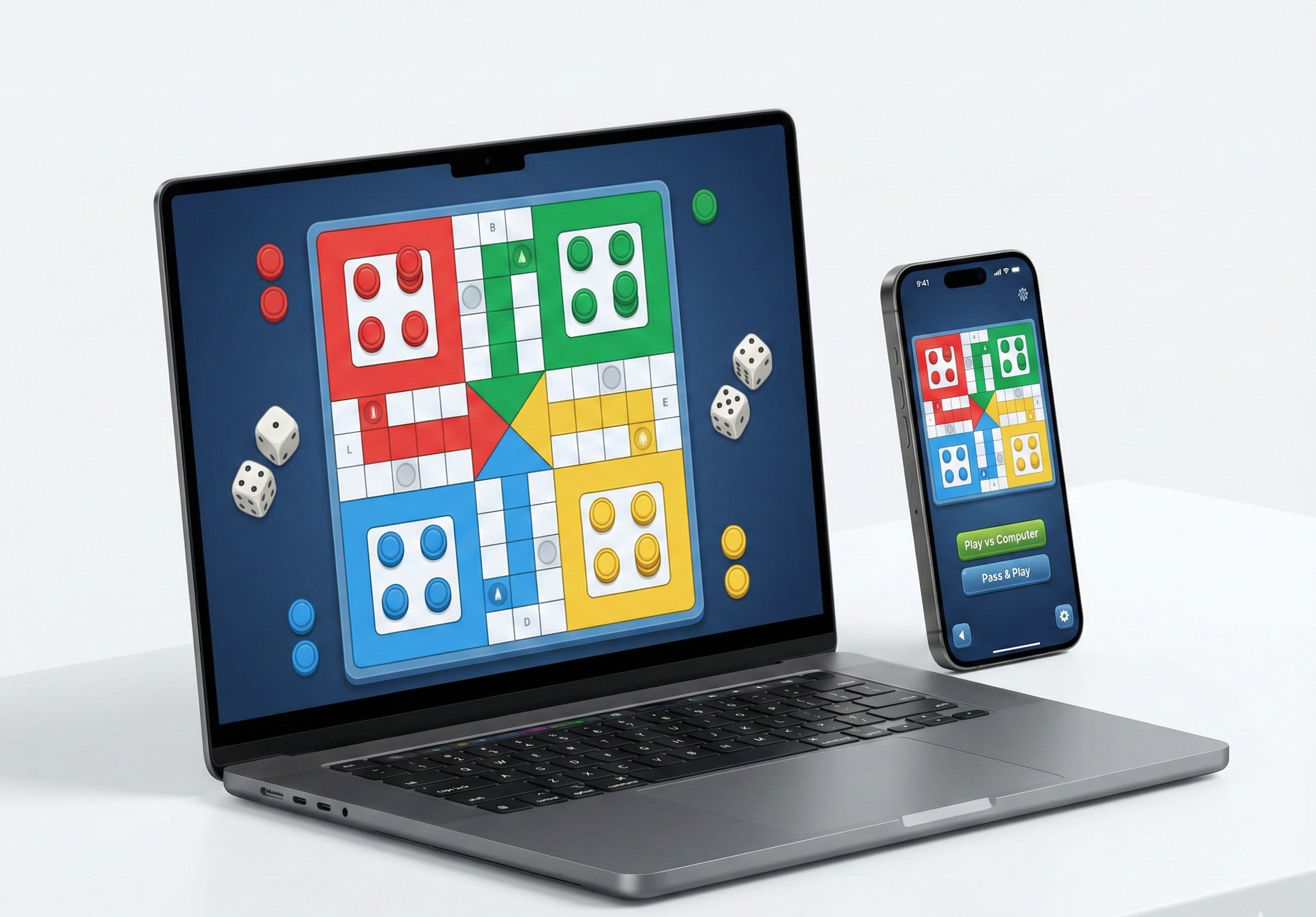 “We build engaging turn-based games like Ludo, Chess, and Carrom. Features include ‘Pass & Play’ (Offline Multiplayer), ‘Play with Computer’ (AI Mode), and ‘Online Lobbies’ to play with friends anywhere.”